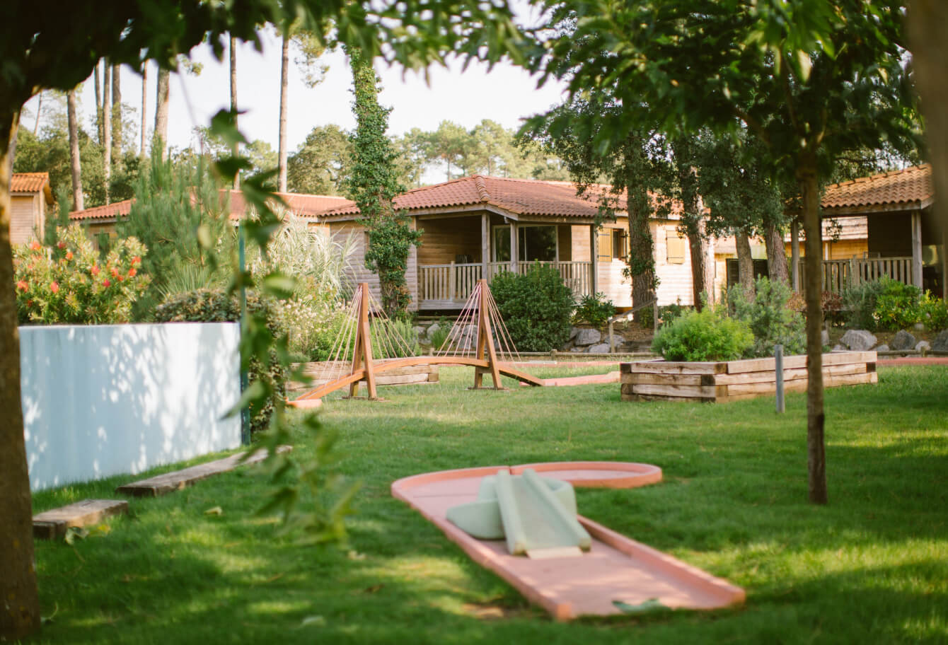 Just like the famous Naturéo Cabanas, the mini golf course is designed to blend harmoniously with its natural surroundings. Our eco-resort is set within a 13-hectare pine forest, and since its creation, we have worked in partnership with the National Forest Office to sustain the village in harmony with nature. Come and play in this lush green haven—the pine trees provide revitalizing energy, just like the ocean breeze, with the beach only 600 meters away!