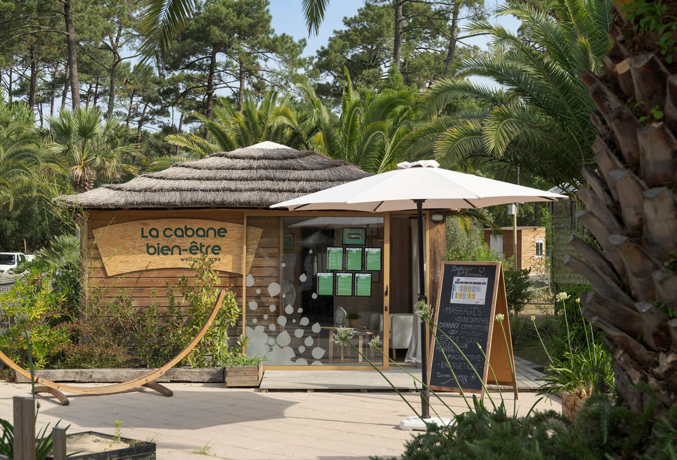 Located in the heart of the resort, next to the pool, the Well-being Cabin is a haven dedicated to relaxation and self-care. Massages, beauty treatments, osteopathy… this cozy cabin offers a full range of services delivered with expert care.
